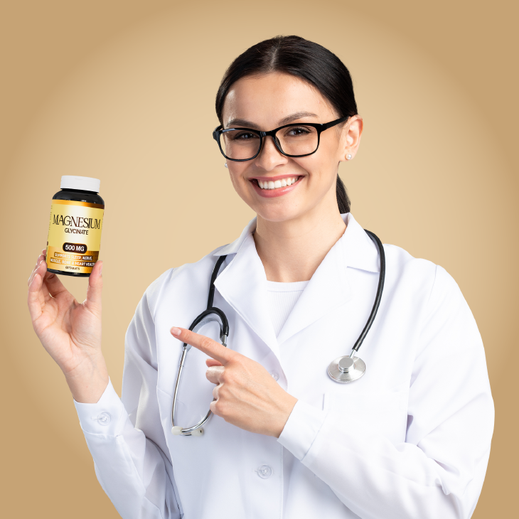 Magnesium Glycinate Promotes Muscles & Nerves functions, reduces stress & anxiety & improves sleep cycle.